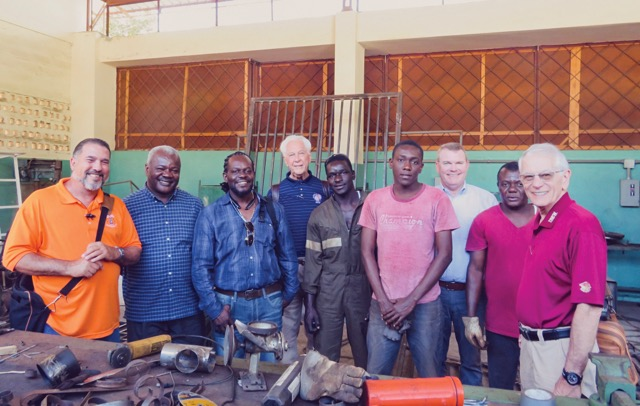 EWWBNA and IBEW International President Emeritus Edwin D. Hill (fourth from left) with volunteers and community members in Haiti in 2018.
